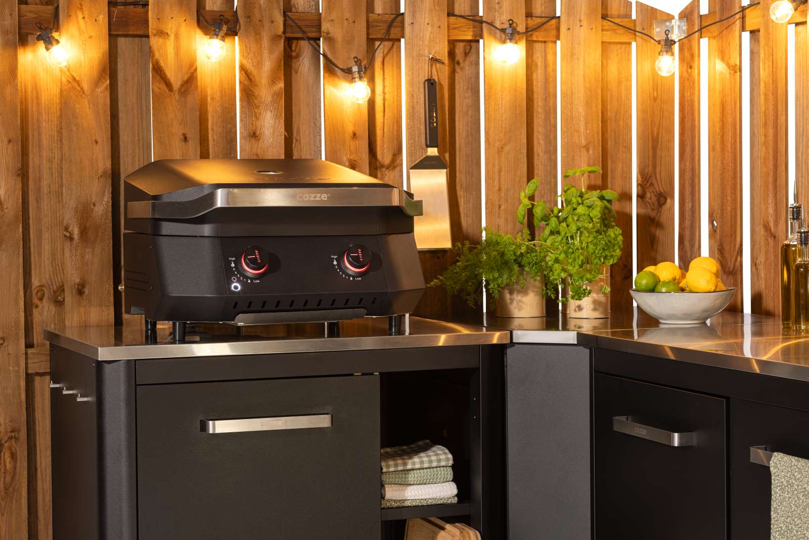 Gemaakt van hoogwaardig poeder, staal en zink, is deze grill duurzaam en bestand tegen alle weersomstandigheden.
